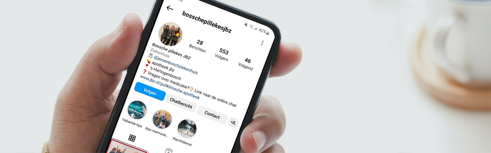 Klik hier voor meer informatie.Sinds maart 2021 kunnen patiënten van de poliklinische apotheek van het Jeroen Bosch Ziekenhuis (JBZ) nog laagdrempeliger contact leggen met de apothekersassistente of de apotheker. Via een livechatvenster op de website van de apotheek kunnen zij op werkdagen gemakkelijk vragen stellen over medicijnen of bijwerkingen of herhaalrecepten aanvragen.