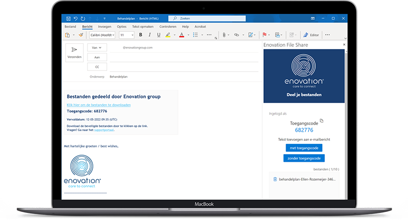De File Share module is beschikbaar voor gebruikers van Enovation Zaurus en/of Enovation ZorgMail (in combinatie met Safe Relay). Wilt u meer informatie? Neem contact met ons op. We vertellen u graag meer.